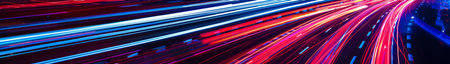 Dynamic Highway at Night with Red and Blue Light Trails.