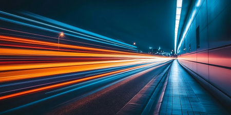 Night city tunnel light trails speed motion