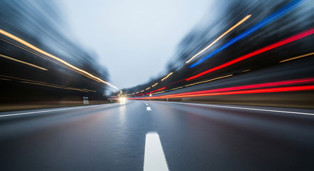 Our image captures a car driving on a motorway at high speeds, overtaking other cars-a dynamic portrayal of urban mobility, fast-paced travel, and the excitement of the road