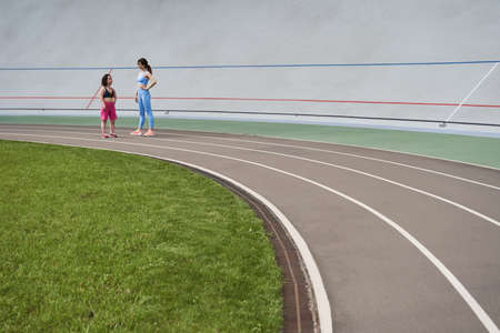 velodrome Bike track in the empty velodrome in the park at autumn. Healthy lifestyle background photo.