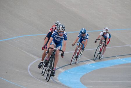 East Point, GA, USA - August 29, 2015: A group of pro cyclists motion blur while sprinting in a race at the Dick Lane Velodrome in East Point, GA on August 29, 2015.
