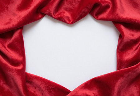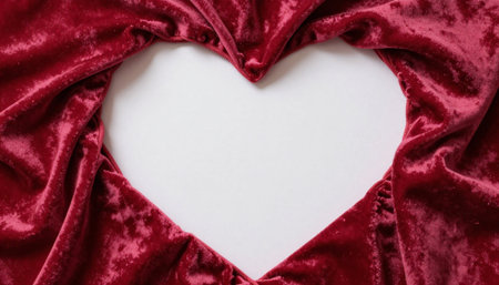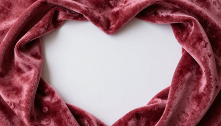 This image captures the elegance of deep red velvet fabric, showcasing its rich texture and luxurious feel. The smooth folds create an artistic composition, ideal for textile design and interior decor inspiration.