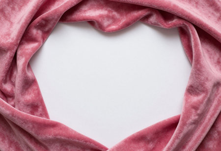 Pink velvet fabric draped smoothly across the background with elegant folds and copy space in the center