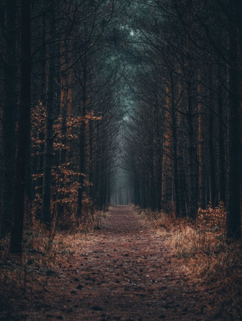 Pathway through a serene forest leads into thick woods, providing a tranquil atmosphere perfect for reflection and inspiration.