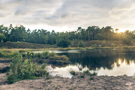 Autumn in North Brabant, landscape with green Kempen forest and moorland in October, Netherlands