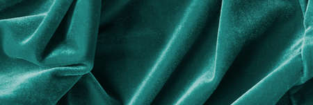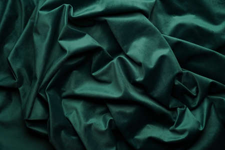 abstract texture of draped green velvet background. eautiful textile backdrop. Close-up. Top view