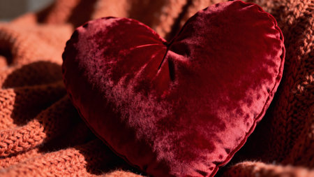 Detailed view of luxurious red velvet fabric with smooth folds and soft lighting
