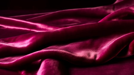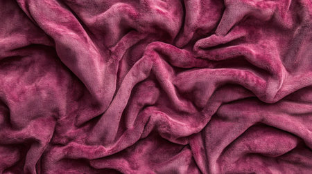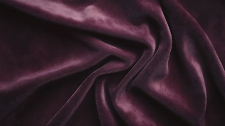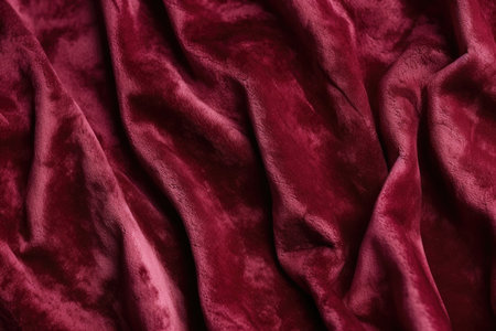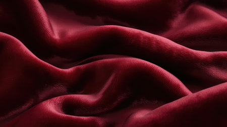 A creative digital illustration depicting Elegant creative design of velvet fabric background in deep burgundy, plush soft folds, warm ambient lighting, luxurious and sophisticated mood, rich color depth. This AI-generated artwork features unique visual elements suitable for various commercial and editorial applications. AI-generated illustration.