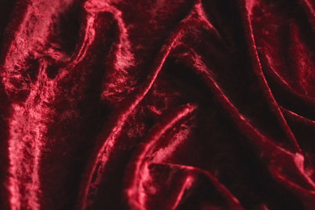 Close-up photo showcasing the intricate folds and luxurious texture of a burgundy velvet fabric