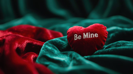 Valentine's day concept. Red heart on green velvet background
