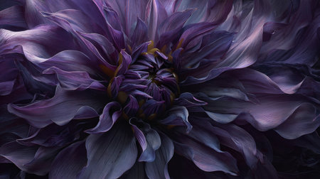 Macro shot of a vibrant purple dahlia flower. Intricate petals and beautiful gradient of color. Detailed floral texture.