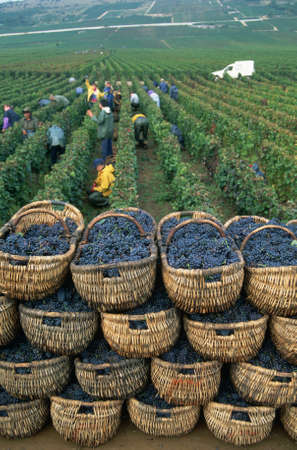 Harvest of ripe wine grape, prepare for pressing grapes to make wine old style.