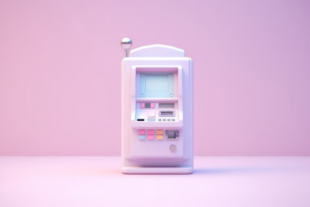 Cute pastel color ATM machine in room with copy space background.