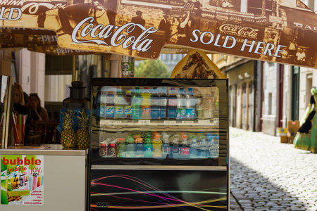 Llucmajor, Spain; December 05 2021: Coca Cola soft drink machine on the street in the Son Noguera industrial estate, island of Mallorca, Spain