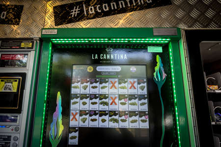 ZAGREB, CROATIA - JUNE 19, 2021: Selective blur on a CBD vending machine, an automat to select the cannabis you want to buy, in Zagreb. Cannabis & weed are legal for medical use, not for recreational use.