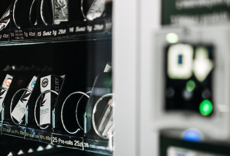 05.28.2022 Warsaw, Poland vending machine interior with different cannabis products . High quality photo