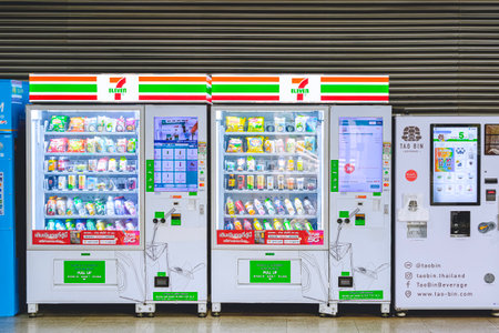 BANGKOK, THAILAND - June 21, 2023: 7-11 with TAO BIN automatic vending machines are available for customers inside of Krung Thep Aphiwat Central Terminal Station building