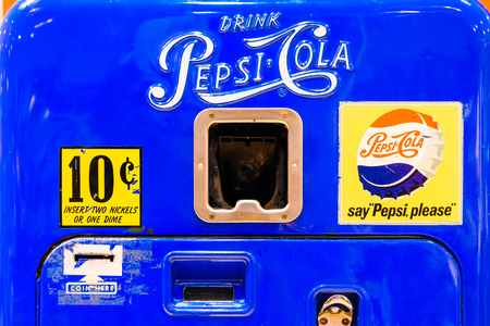 VALENCIA, SPAIN - JULY 31, 2016: Retro Pepsi-Cola Vending Machine Closeup.