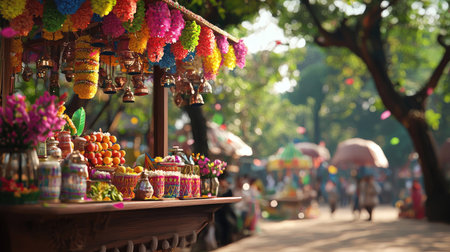 Colorful Flea Market Atmosphere. Sunny weather city walkabout