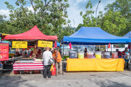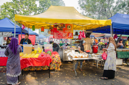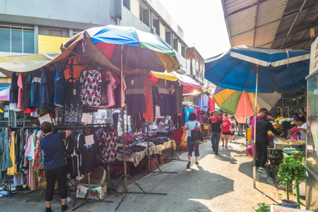 Selangor,Malaysia - July 10,2017 : Scenic view of the morning market in Ampang, Malaysia. The morning market which is selling sell almost everything from agricultural product to souvenir.