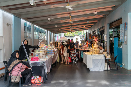 Kuala Lumpur, Malaysia - February 3, 2024: People can seen shopping around the souvenir bazaar alongside Central Market, Kuala Lumpur