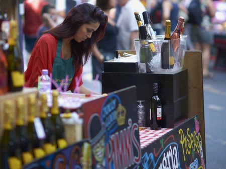 London, United Kingdom - August 11, 2012 Market stall selling drinks at Borough Market in London, England