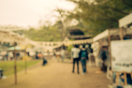 Abstract blur people in garden village day festival bokeh background - vintage festival outdoor fair