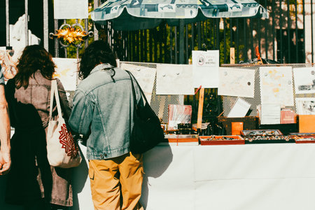 Berlin, Germany. October 2, 2023 Fair, market, sale of goods in the open air. People on city street, urban lifestyle Community event of local artisans