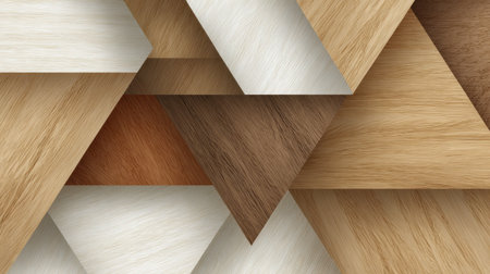 A unique arrangement of wooden triangles showcases various natural colors and textures, adding an artistic touch to any decor.