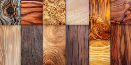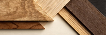 Different wood samples featuring various colors and grains are arranged strategically to highlight their unique textures and natural beauty.