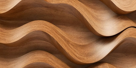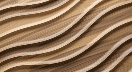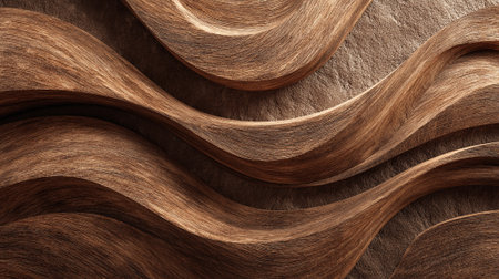 A handcrafted wood surface showcases smooth, undulating grain patterns in warm browns and soft beiges, evoking a serene, earthy mood ideal for creative backdrops.