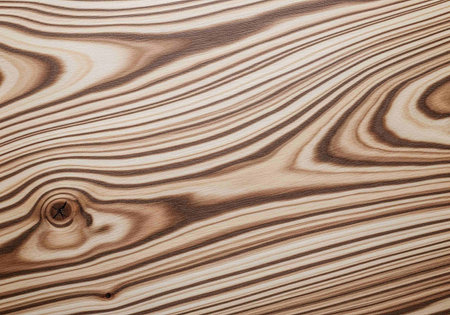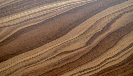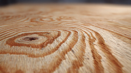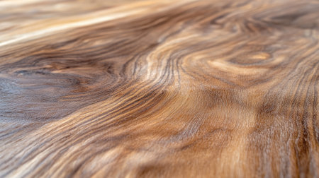 Close-up of a smooth natural wood surface showcasing unique grain patterns and rich brown tones, perfect for design and decoration projects.