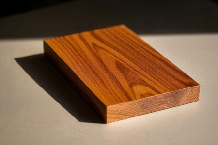 Smooth maple wooden backdrop with a light, creamy hue and subtle grain patterns. The wood surface is polished to a soft sheen, creating a warm, inviting background that radiates natural elegance and simplicity, ideal for a clean, modern setting.