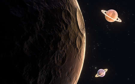 Planets with starry background, 3d rendering. Computer digital drawing.
