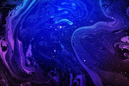 Fluid paint art, marble abstractions in blue, black.