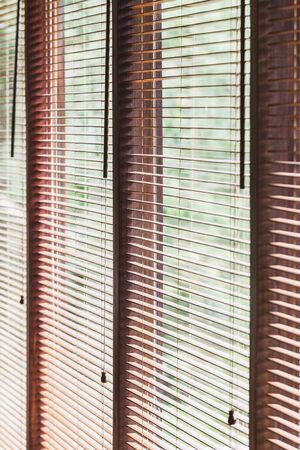 Horizontal blinds on the window. Interior decorations, protection from sunlight. selective focus.
