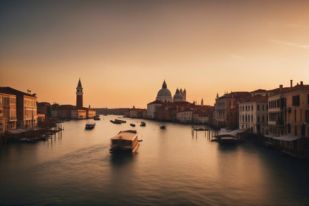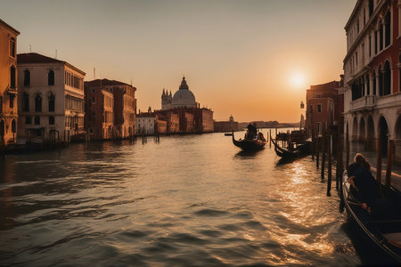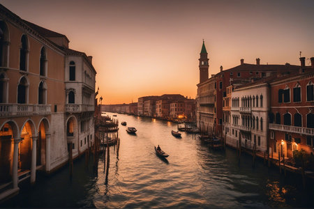 A beautiful scenery of Grand Canal in Venice, Italy at sunset
