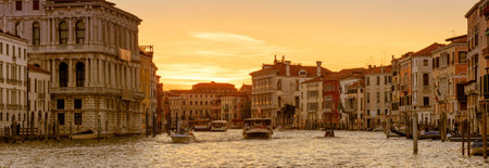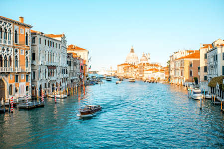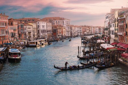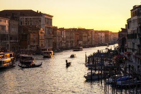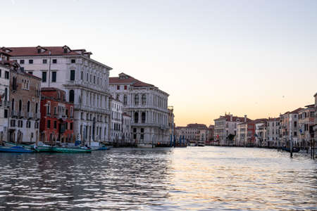 Beautiful view of the Grand Canal at sunset in Venice, Italy