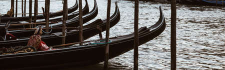 Group of parked gondolas in venice - italy.