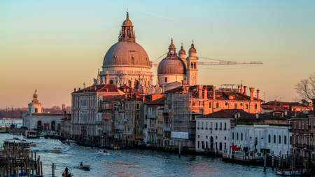 Sunset in Venice, Italy. Grand Canal and Basilica Santa Maria della Salute