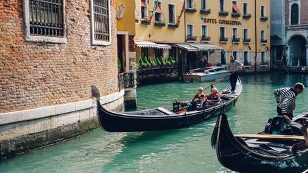 Venice, Italy - april 2,2023: Venice Grand Canal, tourists riding gondolas