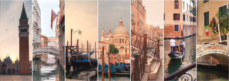 Collage of famous landmarks from Venice, Italy
