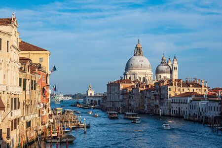 View of Grand Canal and Basilica Santa Maria della Salute in Venice, Italy.