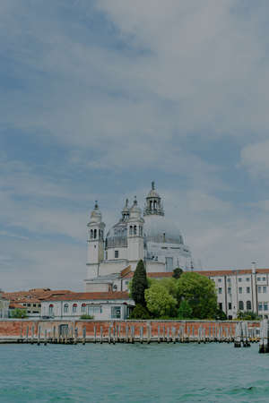 View of santa maria della salute. Italy, Venice. Travel, tourism and leisure concept. Mixed media