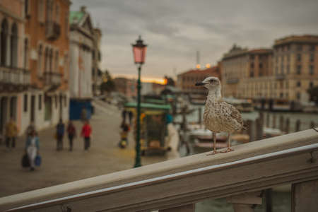 Pigeon sitting on the bridge in Venice, Italy. Venezia