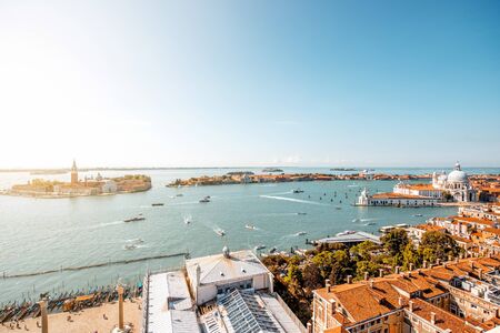 Aerial view on San Giorgio Maggiore island from San Mark's Campanille in Venice