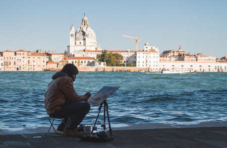 An artist painting the Italy Venice Canals at daytime