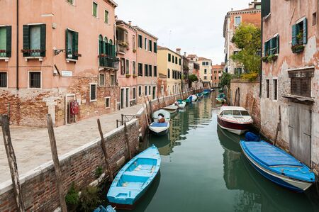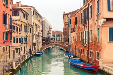 Small romantic canal, old buildings and traditional venetian houses