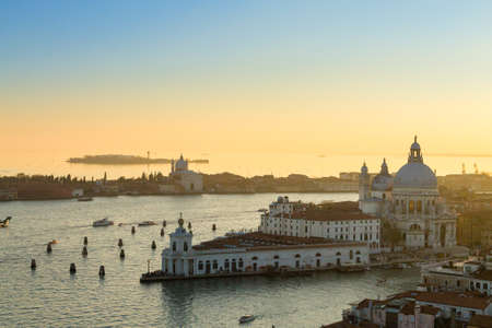 Aerial view of Venice at dawn, Italy. Saint Mary of Health church view. Italian landmark