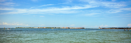 VENICE, ITALY - JUNE 18, 2015: Great view of the sky and the sea joined by Venice, all the city with two tall towers that stand out.